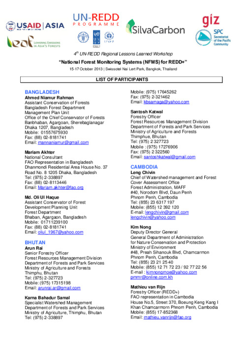Draft t list of participants for Asia-Pacific Regional National Forest Monitoring workshop as at 12 Oct 2013