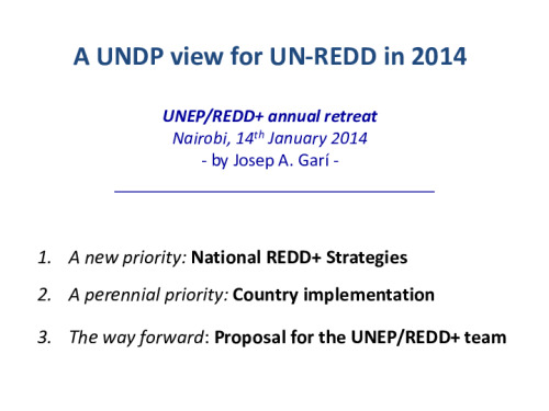Home Document Library 2.UNEP Retreat 2014 -- UNDP Views 2.UNEP Retreat 2014 -- UNDP views Mon, 27 Jan, 2014 Download the resource Format: application/pdf Size: (0.399 MB) download Filed under: Category Empty Related publications View all Foundation documents 23 May, 2025UN-REDD Programme Developer 23/05/2025 - Document Download English 21 May, 2025UN-REDD Programme Draft UN-REDD 2026-2030 Strategy Download English 21 May, 2025UN-REDD Programme Draft Monitoring and Evaluation Framework UN-REDD 2026-30 Download English