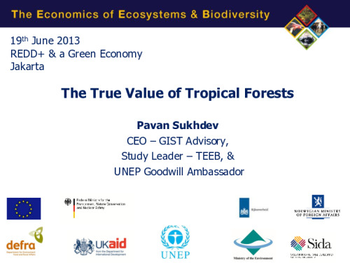 Home Document Library 3. Dr. Pavan Sukhdev_The True Value of Tropical Forests 3. Dr. Pavan Sukhdev_The True Value of Tropical Forests Fri, 28 Jun, 2013 Download the resource Format: application/pdf Size: (2.074 MB) download Filed under: Category Empty Related publications View all Foundation documents 23 May, 2025UN-REDD Programme Developer 23/05/2025 - Document Download English 21 May, 2025UN-REDD Programme Draft UN-REDD 2026-2030 Strategy Download English 21 May, 2025UN-REDD Programme Draft Monitoring and Evaluation Framework UN-REDD 2026-30 Download English