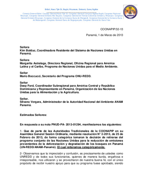 Home Document Library 4a. COONAPIP Reply To UN Letter 32-13, Dated Mar 1 (Spanish Original) 4a. COONAPIP Reply to UN Letter 32-13, dated Mar 1 (Spanish original) Tue, 02 Apr, 2013 Download the resource Format: application/pdf Size: (0.119 MB) download Filed under: Category Empty Related publications View all Foundation documents 23 May, 2025UN-REDD Programme Developer 23/05/2025 - Document Download English 21 May, 2025UN-REDD Programme Draft UN-REDD 2026-2030 Strategy Download English 21 May, 2025UN-REDD Programme Draft Monitoring and Evaluation Framework UN-REDD 2026-30 Download English