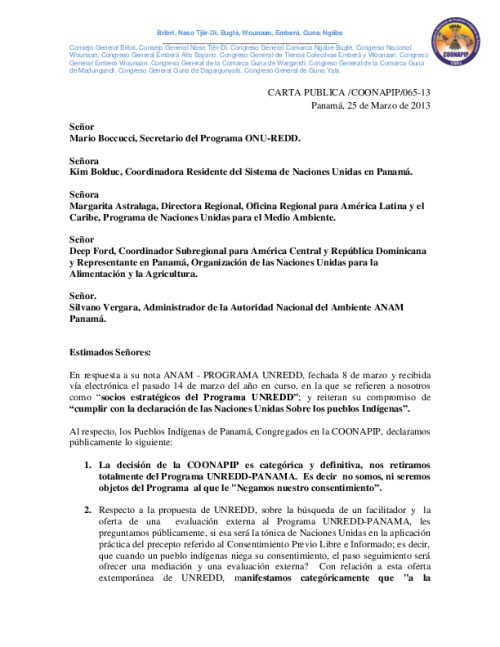Home Document Library 6a. Letter 065-13 From COONAPIP Dated March 25 (Spanish Original) 6a. Letter 065-13 from COONAPIP dated March 25 (Spanish original) Tue, 02 Apr, 2013 Download the resource Format: application/pdf Size: (0.222 MB) download Filed under: Category Empty Related publications View all Foundation documents 23 May, 2025UN-REDD Programme Developer 23/05/2025 - Document Download English 21 May, 2025UN-REDD Programme Draft UN-REDD 2026-2030 Strategy Download English 21 May, 2025UN-REDD Programme Draft Monitoring and Evaluation Framework UN-REDD 2026-30 Download English