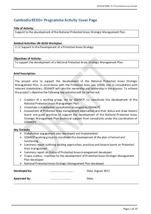 Home Document Library Act 2 1d Concept Note National Protected Areas Management Plan Act 2 1d Concept Note National Protected Areas Management Plan Thu, 08 May, 2014 Download the resource Format: application/pdf Size: (0.436 MB) download Filed under: Category Empty Related publications View all Foundation documents 23 May, 2025UN-REDD Programme Developer 23/05/2025 - Document Download English 21 May, 2025UN-REDD Programme Draft UN-REDD 2026-2030 Strategy Download English 21 May, 2025UN-REDD Programme Draft Monitoring and Evaluation Framework UN-REDD 2026-30 Download English