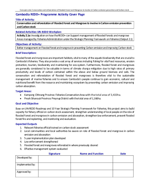 Home Document Library Act 2 1e Concept Note DFC-FiA-AAP Flooded Forests and Mangroves For REDD+ PI Act 2 1e Concept Note DFC-FiA-AAP Flooded Forests and Mangroves for REDD+ PI Tue, 13 May, 2014 Download the resource Format: application/pdf Size: (0.697 MB) download Filed under: Category Empty Related publications View all Foundation documents 23 May, 2025UN-REDD Programme Developer 23/05/2025 - Document Download English 21 May, 2025UN-REDD Programme Draft UN-REDD 2026-2030 Strategy Download English 21 May, 2025UN-REDD Programme Draft Monitoring and Evaluation Framework UN-REDD 2026-30 Download English