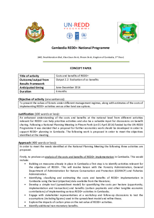 Home Document Library Act 2 2a Concept Note Costs and Benefits of REDD+ Act 2 2a Concept Note Costs and Benefits of REDD+ Sat, 10 May, 2014 Download the resource Format: application/pdf Size: (0.395 MB) download Filed under: Category Empty Related publications View all Foundation documents 23 May, 2025UN-REDD Programme Developer 23/05/2025 - Document Download English 21 May, 2025UN-REDD Programme Draft UN-REDD 2026-2030 Strategy Download English 21 May, 2025UN-REDD Programme Draft Monitoring and Evaluation Framework UN-REDD 2026-30 Download English