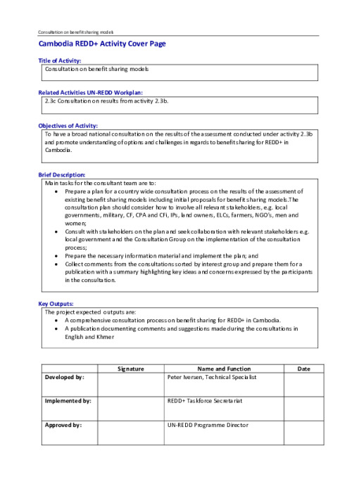 Home Document Library Act 2 3c Concept Note Consultation On Benefit Sharing Models 16 July PI Act 2 3c Concept Note Consultation on benefit sharing models 16 July PI Tue, 13 May, 2014 Download the resource Format: application/pdf Size: (0.306 MB) download Filed under: Category Empty Related publications View all Foundation documents 23 May, 2025UN-REDD Programme Developer 23/05/2025 - Document Download English 21 May, 2025UN-REDD Programme Draft UN-REDD 2026-2030 Strategy Download English 21 May, 2025UN-REDD Programme Draft Monitoring and Evaluation Framework UN-REDD 2026-30 Download English