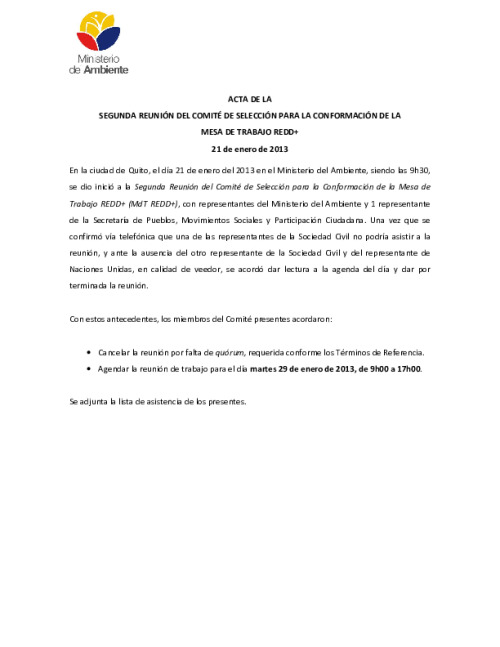 Home Document Library Acta Segunda Reunión Comité de Selección 2013-01-21 Acta segunda reunión Comité de Selección 2013-01-21 Thu, 13 Jun, 2013 Download the resource Format: application/pdf Size: (0.161 MB) download Filed under: Category Empty Related publications View all Foundation documents 23 May, 2025UN-REDD Programme Developer 23/05/2025 - Document Download English 21 May, 2025UN-REDD Programme Draft UN-REDD 2026-2030 Strategy Download English 21 May, 2025UN-REDD Programme Draft Monitoring and Evaluation Framework UN-REDD 2026-30 Download English