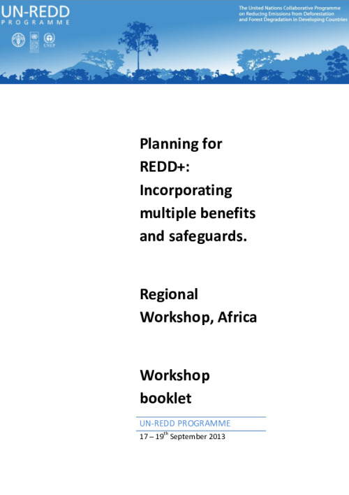 Home Document Library Africa Regional Workshop Booklet - EN Africa Regional workshop booklet - EN Wed, 02 Oct, 2013 Download the resource Format: application/pdf Size: (1.568 MB) download Filed under: Category Empty Related publications View all Foundation documents 23 May, 2025UN-REDD Programme Developer 23/05/2025 - Document Download English 21 May, 2025UN-REDD Programme Draft UN-REDD 2026-2030 Strategy Download English 21 May, 2025UN-REDD Programme Draft Monitoring and Evaluation Framework UN-REDD 2026-30 Download English