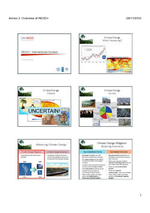 Home Document Library Annex 3 Introduction To REDD+ Annex 3 Introduction to REDD+ Mon, 25 Feb, 2013 Download the resource Format: application/pdf Size: (2.184 MB) download Filed under: Category Empty Related publications View all Foundation documents 23 May, 2025UN-REDD Programme Developer 23/05/2025 - Document Download English 21 May, 2025UN-REDD Programme Draft UN-REDD 2026-2030 Strategy Download English 21 May, 2025UN-REDD Programme Draft Monitoring and Evaluation Framework UN-REDD 2026-30 Download English