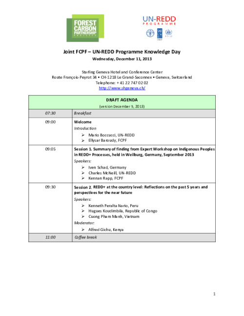 Home Document Library Annotated Agenda FCPF UN-REDD Knowledge Day 11 December 2013 Annotated Agenda FCPF UN-REDD Knowledge Day 11 December 2013 Thu, 05 Dec, 2013 Download the resource Format: application/pdf Size: (0.539 MB) download Filed under: Tags UN-REDD FCPF Knowledge Category Empty Related publications View all Foundation documents 23 May, 2025UN-REDD Programme Developer 23/05/2025 - Document Download English 21 May, 2025UN-REDD Programme Draft UN-REDD 2026-2030 Strategy Download English 21 May, 2025UN-REDD Programme Draft Monitoring and Evaluation Framework UN-REDD 2026-30 Download English