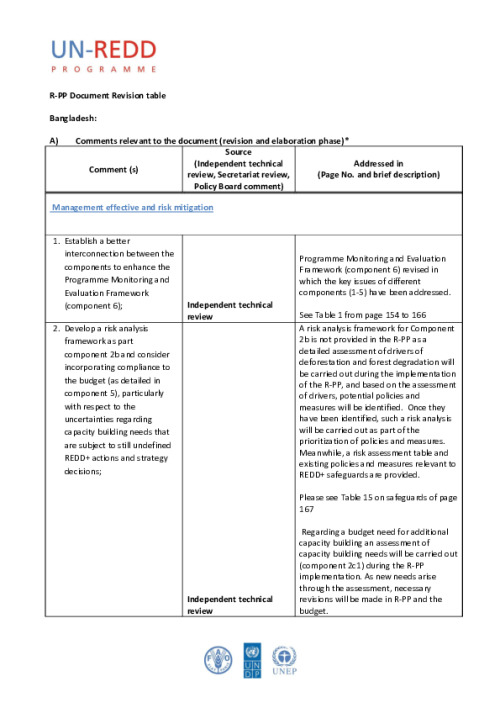 Home Document Library Bangladesh R-PP Revision Matrix_27april2014 Bangladesh R-PP revision matrix_27april2014 Thu, 29 May, 2014 Download the resource Format: application/pdf Size: (0.28 MB) download Filed under: Category Empty Related publications View all Foundation documents 23 May, 2025UN-REDD Programme Developer 23/05/2025 - Document Download English 21 May, 2025UN-REDD Programme Draft UN-REDD 2026-2030 Strategy Download English 21 May, 2025UN-REDD Programme Draft Monitoring and Evaluation Framework UN-REDD 2026-30 Download English