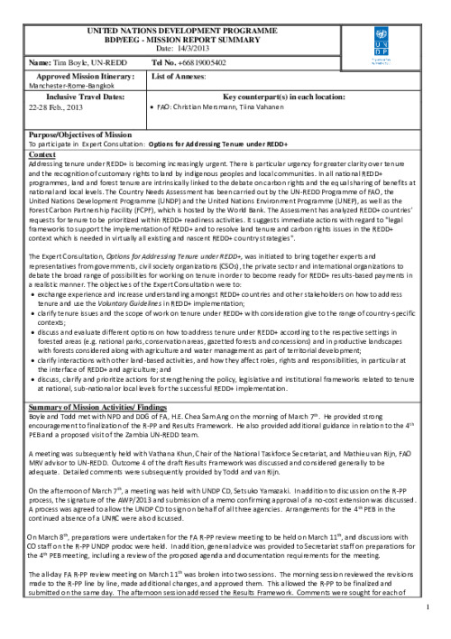 Home Document Library BTOR Boyle Cambodia Feb 2013 BTOR Boyle Cambodia Feb 2013 Mon, 20 Oct, 2014 Download the resource Format: application/pdf Size: (0.286 MB) download Filed under: Category Empty Related publications View all Foundation documents 23 May, 2025UN-REDD Programme Developer 23/05/2025 - Document Download English 21 May, 2025UN-REDD Programme Draft UN-REDD 2026-2030 Strategy Download English 21 May, 2025UN-REDD Programme Draft Monitoring and Evaluation Framework UN-REDD 2026-30 Download English