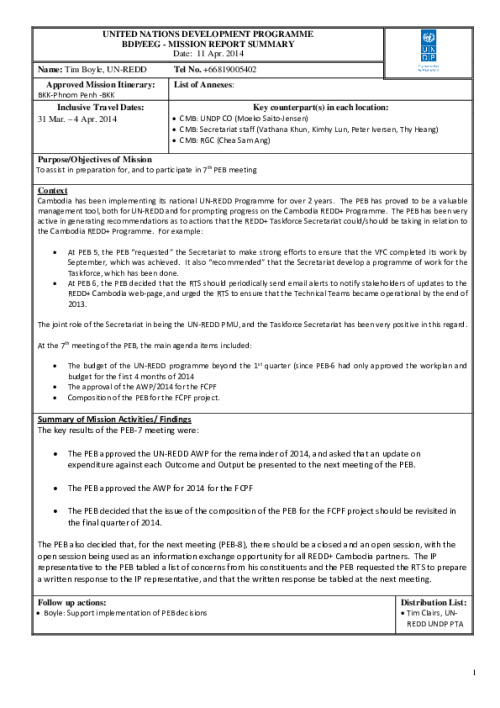 Home Document Library BTOR Boyle Cambodia Mar-Apr 2014 BTOR Boyle Cambodia Mar-Apr 2014 Mon, 20 Oct, 2014 Download the resource Format: application/pdf Size: (0.258 MB) download Filed under: Category Empty Related publications View all Foundation documents 23 May, 2025UN-REDD Programme Developer 23/05/2025 - Document Download English 21 May, 2025UN-REDD Programme Draft UN-REDD 2026-2030 Strategy Download English 21 May, 2025UN-REDD Programme Draft Monitoring and Evaluation Framework UN-REDD 2026-30 Download English