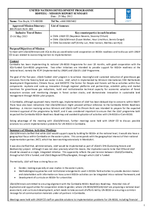 Home Document Library BTOR Boyle Cambodia May 2013 BTOR Boyle Cambodia May 2013 Mon, 20 Oct, 2014 Download the resource Format: application/pdf Size: (0.202 MB) download Filed under: Category Empty Related publications View all Foundation documents 23 May, 2025UN-REDD Programme Developer 23/05/2025 - Document Download English 21 May, 2025UN-REDD Programme Draft UN-REDD 2026-2030 Strategy Download English 21 May, 2025UN-REDD Programme Draft Monitoring and Evaluation Framework UN-REDD 2026-30 Download English