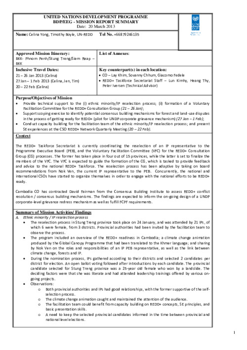 Home Document Library BTOR Cambodia BTOR Cambodia Mon, 25 Mar, 2013 Download the resource Format: application/pdf Size: (0.494 MB) download Filed under: Category Empty Related publications View all Foundation documents 23 May, 2025UN-REDD Programme Developer 23/05/2025 - Document Download English 21 May, 2025UN-REDD Programme Draft UN-REDD 2026-2030 Strategy Download English 21 May, 2025UN-REDD Programme Draft Monitoring and Evaluation Framework UN-REDD 2026-30 Download English