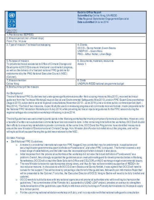 Home Document Library BTOR Celina_June 2014 PNG BTOR Celina_June 2014 PNG Tue, 24 Jun, 2014 Download the resource Format: application/pdf Size: (0.337 MB) download Filed under: Category Empty Related publications View all Foundation documents 23 May, 2025UN-REDD Programme Developer 23/05/2025 - Document Download English 21 May, 2025UN-REDD Programme Draft UN-REDD 2026-2030 Strategy Download English 21 May, 2025UN-REDD Programme Draft Monitoring and Evaluation Framework UN-REDD 2026-30 Download English
