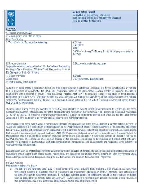 Home Document Library BTOR Celina_May 2014 Hanoi BTOR Celina_May 2014 Hanoi Wed, 21 May, 2014 Download the resource Format: application/pdf Size: (0.237 MB) download Filed under: Category Empty Related publications View all Foundation documents 23 May, 2025UN-REDD Programme Developer 23/05/2025 - Document Download English 21 May, 2025UN-REDD Programme Draft UN-REDD 2026-2030 Strategy Download English 21 May, 2025UN-REDD Programme Draft Monitoring and Evaluation Framework UN-REDD 2026-30 Download English