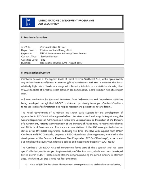 Home Document Library CAM OP 1.2 Communications Officer CAM OP 1.2 Communications Officer Tue, 19 Mar, 2013 Download the resource Format: application/pdf Size: (0.224 MB) download Filed under: Category Empty Related publications View all Foundation documents 23 May, 2025UN-REDD Programme Developer 23/05/2025 - Document Download English 21 May, 2025UN-REDD Programme Draft UN-REDD 2026-2030 Strategy Download English 21 May, 2025UN-REDD Programme Draft Monitoring and Evaluation Framework UN-REDD 2026-30 Download English