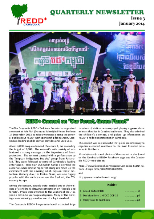 Home Document Library Cambodia Newsletter Issue 3 Cambodia Newsletter Issue 3 Fri, 07 Feb, 2014 Download the resource Format: application/pdf Size: (0.647 MB) download Filed under: Category Empty Related publications View all Foundation documents 23 May, 2025UN-REDD Programme Developer 23/05/2025 - Document Download English 21 May, 2025UN-REDD Programme Draft UN-REDD 2026-2030 Strategy Download English 21 May, 2025UN-REDD Programme Draft Monitoring and Evaluation Framework UN-REDD 2026-30 Download English