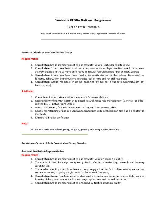Home Document Library CG Criteria (En) CG Criteria (En) Thu, 24 Oct, 2013 Download the resource Format: application/pdf Size: (0.101 MB) download Filed under: Category Empty Related publications View all Foundation documents 23 May, 2025UN-REDD Programme Developer 23/05/2025 - Document Download English 21 May, 2025UN-REDD Programme Draft UN-REDD 2026-2030 Strategy Download English 21 May, 2025UN-REDD Programme Draft Monitoring and Evaluation Framework UN-REDD 2026-30 Download English