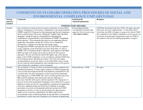 Home Document Library Comment Response Matrix SECU SOPs Comment Response Matrix SECU SOPs Mon, 09 Jun, 2014 Download the resource Format: application/pdf Size: (0.416 MB) download Filed under: Category Empty Related publications View all Foundation documents 23 May, 2025UN-REDD Programme Developer 23/05/2025 - Document Download English 21 May, 2025UN-REDD Programme Draft UN-REDD 2026-2030 Strategy Download English 21 May, 2025UN-REDD Programme Draft Monitoring and Evaluation Framework UN-REDD 2026-30 Download English