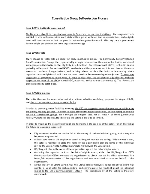 Home Document Library Consultation Group Self-selection Process (En) Consultation Group self-selection process (En) Thu, 24 Oct, 2013 Download the resource Format: application/pdf Size: (0.12 MB) download Filed under: Category Empty Related publications View all Foundation documents 23 May, 2025UN-REDD Programme Developer 23/05/2025 - Document Download English 21 May, 2025UN-REDD Programme Draft UN-REDD 2026-2030 Strategy Download English 21 May, 2025UN-REDD Programme Draft Monitoring and Evaluation Framework UN-REDD 2026-30 Download English