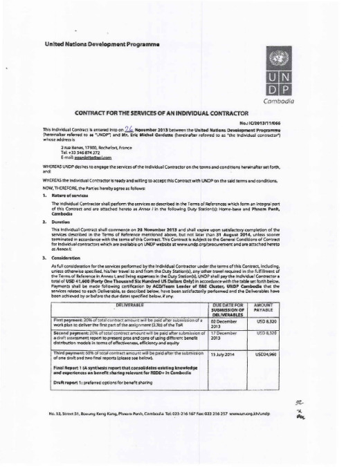 Home Document Library Contract and TOR_2.3b,d_Eric Contract and TOR_2.3b,d_Eric Mon, 05 May, 2014 Download the resource Format: application/pdf Size: (5.46 MB) download Filed under: Category Empty Related publications View all Foundation documents 23 May, 2025UN-REDD Programme Developer 23/05/2025 - Document Download English 21 May, 2025UN-REDD Programme Draft UN-REDD 2026-2030 Strategy Download English 21 May, 2025UN-REDD Programme Draft Monitoring and Evaluation Framework UN-REDD 2026-30 Download English