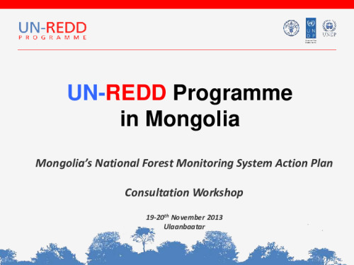 Home Document Library Current Status of REDD In Mongolia Current status of REDD in Mongolia Wed, 29 Jan, 2014 Download the resource Format: application/pdf Size: (1.168 MB) download Filed under: Tags Mongolia MRV Carbon Category Empty Related publications View all Foundation documents 23 May, 2025UN-REDD Programme Developer 23/05/2025 - Document Download English 21 May, 2025UN-REDD Programme Draft UN-REDD 2026-2030 Strategy Download English 21 May, 2025UN-REDD Programme Draft Monitoring and Evaluation Framework UN-REDD 2026-30 Download English