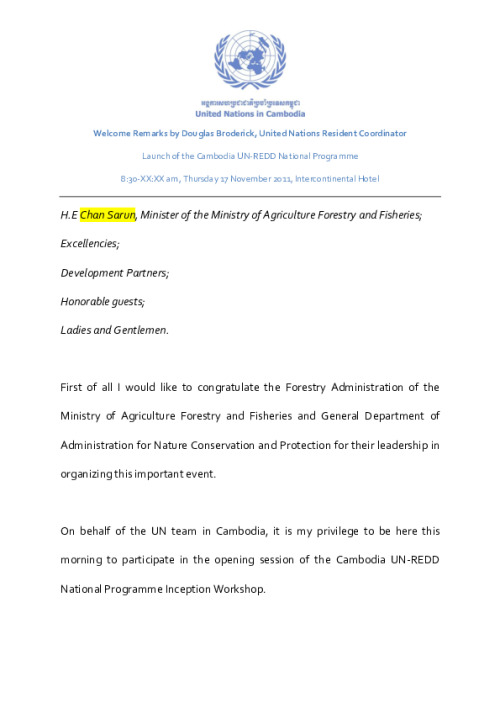 Home Document Library DBroderick Speech At Inception Workshop DBroderick speech at Inception Workshop Tue, 19 Mar, 2013 Download the resource Format: application/pdf Size: (0.278 MB) download Filed under: Category Empty Related publications View all Foundation documents 23 May, 2025UN-REDD Programme Developer 23/05/2025 - Document Download English 21 May, 2025UN-REDD Programme Draft UN-REDD 2026-2030 Strategy Download English 21 May, 2025UN-REDD Programme Draft Monitoring and Evaluation Framework UN-REDD 2026-30 Download English