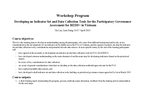 Home Document Library Detailed Workshop Program Detailed workshop program Thu, 18 Apr, 2013 Download the resource Format: application/pdf Size: (0.128 MB) download Filed under: Category Empty Related publications View all Foundation documents 23 May, 2025UN-REDD Programme Developer 23/05/2025 - Document Download English 21 May, 2025UN-REDD Programme Draft UN-REDD 2026-2030 Strategy Download English 21 May, 2025UN-REDD Programme Draft Monitoring and Evaluation Framework UN-REDD 2026-30 Download English