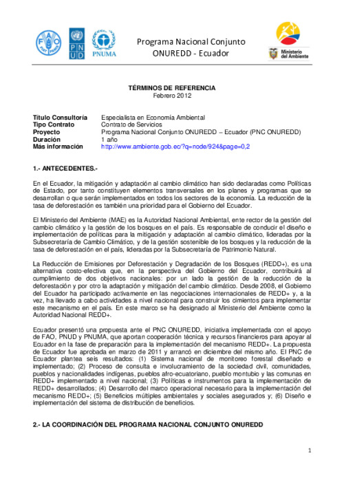Home Document Library Especialista En Economía Ambiental Especialista en Economía Ambiental Fri, 28 Feb, 2014 Download the resource Format: application/pdf Size: (0.153 MB) download Filed under: Category Empty Related publications View all Foundation documents 23 May, 2025UN-REDD Programme Developer 23/05/2025 - Document Download English 21 May, 2025UN-REDD Programme Draft UN-REDD 2026-2030 Strategy Download English 21 May, 2025UN-REDD Programme Draft Monitoring and Evaluation Framework UN-REDD 2026-30 Download English