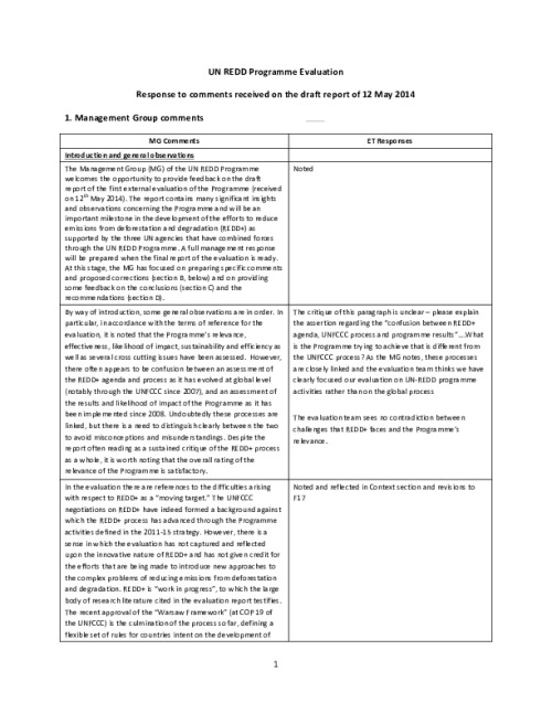Home Document Library Evaluation Team Response To Comments On Draft Evaluation Report Evaluation Team response to comments on draft Evaluation report Thu, 19 Jun, 2014 Download the resource Format: application/pdf Size: (0.398 MB) download Filed under: Category Empty Related publications View all Foundation documents 23 May, 2025UN-REDD Programme Developer 23/05/2025 - Document Download English 21 May, 2025UN-REDD Programme Draft UN-REDD 2026-2030 Strategy Download English 21 May, 2025UN-REDD Programme Draft Monitoring and Evaluation Framework UN-REDD 2026-30 Download English