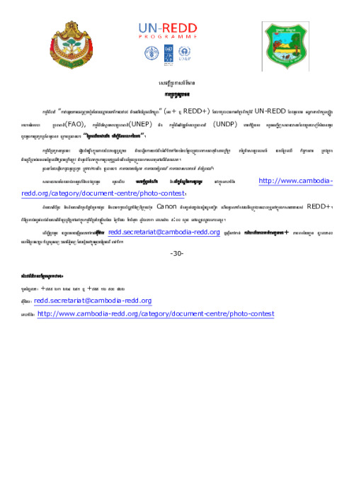 Home Document Library F-Press Release-Photo Contest F-Press Release-Photo Contest Mon, 27 May, 2013 Download the resource Format: application/pdf Size: (0.516 MB) download Filed under: Category Empty Related publications View all Foundation documents 23 May, 2025UN-REDD Programme Developer 23/05/2025 - Document Download English 21 May, 2025UN-REDD Programme Draft UN-REDD 2026-2030 Strategy Download English 21 May, 2025UN-REDD Programme Draft Monitoring and Evaluation Framework UN-REDD 2026-30 Download English