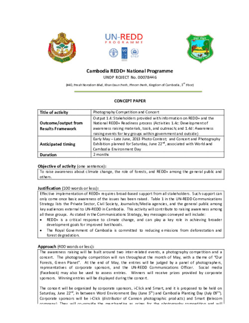 Home Document Library F-V2-REDD+Concept Paper For Photography Competition and Concert F-V2-REDD+Concept paper for photography competition and concert Mon, 27 May, 2013 Download the resource Format: application/pdf Size: (0.201 MB) download Filed under: Category Empty Related publications View all Foundation documents 23 May, 2025UN-REDD Programme Developer 23/05/2025 - Document Download English 21 May, 2025UN-REDD Programme Draft UN-REDD 2026-2030 Strategy Download English 21 May, 2025UN-REDD Programme Draft Monitoring and Evaluation Framework UN-REDD 2026-30 Download English