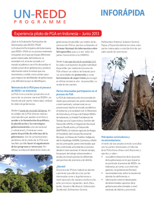 Home Document Library Fast Facts - PGA In Indonesia (Spanish Version) Fast Facts - PGA in Indonesia (Spanish version) Tue, 16 Jul, 2013 Download the resource Format: application/pdf Size: (0.28 MB) download Filed under: Category Empty Related publications View all Foundation documents 23 May, 2025UN-REDD Programme Developer 23/05/2025 - Document Download English 21 May, 2025UN-REDD Programme Draft UN-REDD 2026-2030 Strategy Download English 21 May, 2025UN-REDD Programme Draft Monitoring and Evaluation Framework UN-REDD 2026-30 Download English