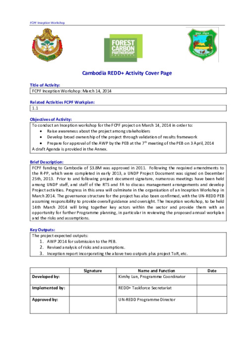 Home Document Library FCPF Output 1 1 Concept Note Inception Workshop FCPF Output 1 1 Concept Note Inception Workshop Wed, 14 May, 2014 Download the resource Format: application/pdf Size: (0.441 MB) download Filed under: Category Empty Related publications View all Foundation documents 23 May, 2025UN-REDD Programme Developer 23/05/2025 - Document Download English 21 May, 2025UN-REDD Programme Draft UN-REDD 2026-2030 Strategy Download English 21 May, 2025UN-REDD Programme Draft Monitoring and Evaluation Framework UN-REDD 2026-30 Download English