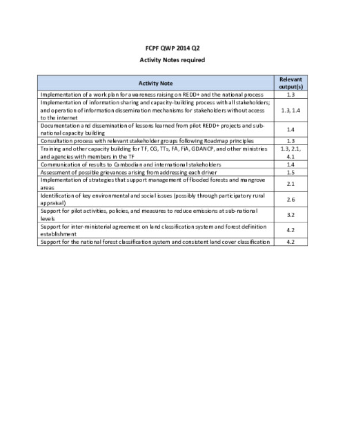 Home Document Library FCPF QWP 2014 Q2 Activity Notes Required FCPF QWP 2014 Q2 Activity Notes required Wed, 14 May, 2014 Download the resource Format: application/pdf Size: (0.175 MB) download Filed under: Category Empty Related publications View all Foundation documents 23 May, 2025UN-REDD Programme Developer 23/05/2025 - Document Download English 21 May, 2025UN-REDD Programme Draft UN-REDD 2026-2030 Strategy Download English 21 May, 2025UN-REDD Programme Draft Monitoring and Evaluation Framework UN-REDD 2026-30 Download English