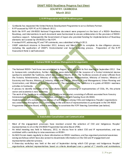 Home Document Library FCPF Readiness Progress Sheet March 2013 FCPF Readiness Progress Sheet March 2013 Thu, 14 Mar, 2013 Download the resource Format: application/pdf Size: (0.321 MB) download Filed under: Category Empty Related publications View all Foundation documents 23 May, 2025UN-REDD Programme Developer 23/05/2025 - Document Download English 21 May, 2025UN-REDD Programme Draft UN-REDD 2026-2030 Strategy Download English 21 May, 2025UN-REDD Programme Draft Monitoring and Evaluation Framework UN-REDD 2026-30 Download English