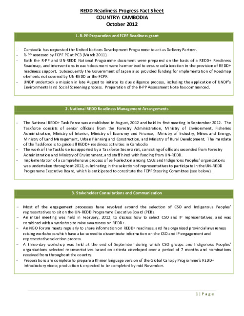 Home Document Library FCPF Readiness Progress Sheet Oct 2012 FCPF Readiness Progress Sheet Oct 2012 Thu, 14 Mar, 2013 Download the resource Format: application/pdf Size: (0.081 MB) download Filed under: Category Empty Related publications View all Foundation documents 23 May, 2025UN-REDD Programme Developer 23/05/2025 - Document Download English 21 May, 2025UN-REDD Programme Draft UN-REDD 2026-2030 Strategy Download English 21 May, 2025UN-REDD Programme Draft Monitoring and Evaluation Framework UN-REDD 2026-30 Download English