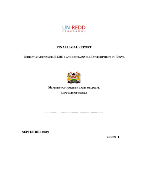 Home Document Library Final Legal Report On Forest Governance, REDD+ and Sustainable Development In Kenya Final legal report on forest governance, REDD+ and sustainable development in Kenya Tue, 06 May, 2014 Download the resource Format: application/pdf Size: (1.109 MB) download Filed under: Category Empty Related publications View all Foundation documents 23 May, 2025UN-REDD Programme Developer 23/05/2025 - Document Download English 21 May, 2025UN-REDD Programme Draft UN-REDD 2026-2030 Strategy Download English 21 May, 2025UN-REDD Programme Draft Monitoring and Evaluation Framework UN-REDD 2026-30 Download English