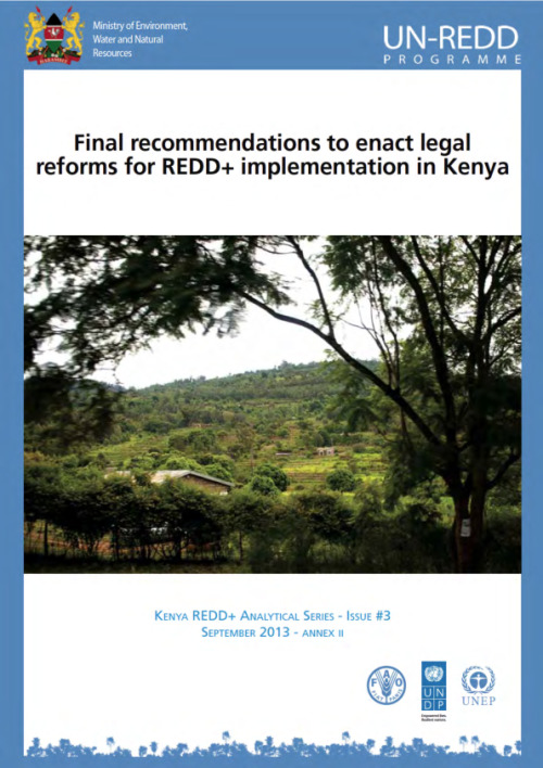 Home Document Library Final Recommendations To Enact Legal Reforms For REDD+ Implementation In Kenya Final recommendations to enact legal reforms for REDD+ implementation in Kenya Mon, 02 Jun, 2014 Download the resource Format: application/pdf Size: (0.838 MB) download Filed under: Category Empty Related publications View all Foundation documents 23 May, 2025UN-REDD Programme Developer 23/05/2025 - Document Download English 21 May, 2025UN-REDD Programme Draft UN-REDD 2026-2030 Strategy Download English 21 May, 2025UN-REDD Programme Draft Monitoring and Evaluation Framework UN-REDD 2026-30 Download English