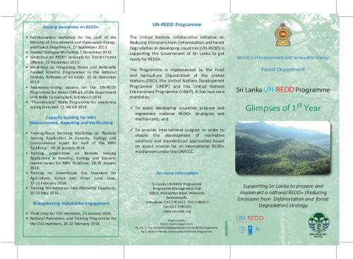 Home Document Library Glimpses of First Year Glimpses of First Year Thu, 18 Sep, 2014 Download the resource Format: application/pdf Size: (2.176 MB) download Filed under: Category Empty Related publications View all Foundation documents 23 May, 2025UN-REDD Programme Developer 23/05/2025 - Document Download English 21 May, 2025UN-REDD Programme Draft UN-REDD 2026-2030 Strategy Download English 21 May, 2025UN-REDD Programme Draft Monitoring and Evaluation Framework UN-REDD 2026-30 Download English