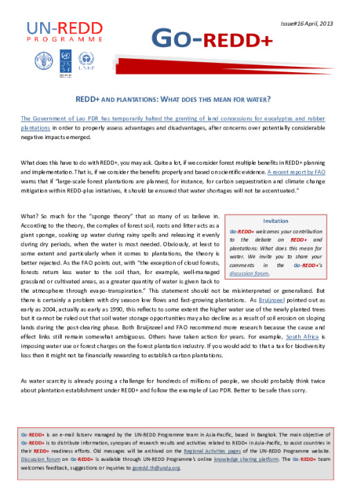 Home Document Library Go-REDD+_26 REDD+ and Plantations Go-REDD+_26 REDD+ and plantations Mon, 15 Apr, 2013 Download the resource Format: application/pdf Size: (0.39 MB) download Filed under: Category Empty Related publications View all Foundation documents 23 May, 2025UN-REDD Programme Developer 23/05/2025 - Document Download English 21 May, 2025UN-REDD Programme Draft UN-REDD 2026-2030 Strategy Download English 21 May, 2025UN-REDD Programme Draft Monitoring and Evaluation Framework UN-REDD 2026-30 Download English