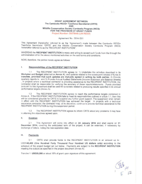 Home Document Library Grant Agreement With WCS Grant Agreement with WCS Mon, 05 May, 2014 Download the resource Format: application/pdf Size: (4.563 MB) download Filed under: Category Empty Related publications View all Foundation documents 23 May, 2025UN-REDD Programme Developer 23/05/2025 - Document Download English 21 May, 2025UN-REDD Programme Draft UN-REDD 2026-2030 Strategy Download English 21 May, 2025UN-REDD Programme Draft Monitoring and Evaluation Framework UN-REDD 2026-30 Download English