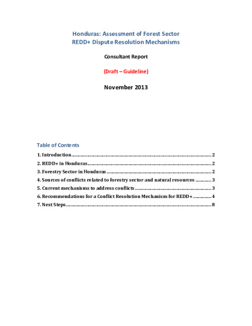 Home Document Library Honduras - REDD+ Grievance Mechanism - Assessment Report (DRAFT OUTLINE) Honduras - REDD+ Grievance Mechanism - Assessment Report (DRAFT OUTLINE) Sun, 08 Dec, 2013 Download the resource Format: application/pdf Size: (0.647 MB) download Filed under: Category Empty Related publications View all Foundation documents 23 May, 2025UN-REDD Programme Developer 23/05/2025 - Document Download English 21 May, 2025UN-REDD Programme Draft UN-REDD 2026-2030 Strategy Download English 21 May, 2025UN-REDD Programme Draft Monitoring and Evaluation Framework UN-REDD 2026-30 Download English