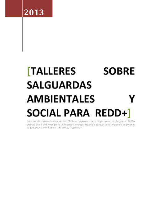 Informe de sistematización de los “Talleres regionales de dialogo sobre un Programa REDD+ (Reducción de Emisiones por la Deforestación y Degradación de Bosques) en el marco de las políticas de preservación forestal de la República Argentina”.