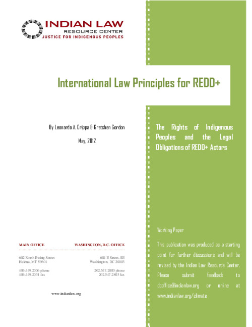 In order to reorient REDD+ to respect the rights of indigenous peoples and address substantial risks to their livelihoods and ways of life, the Indian Law Resource Center developed the International Law Principles for REDD+: The Rights of Indigenous Peoples and the Legal Obligations of REDD+ Actors. We welcome your feedback on this working paper.
