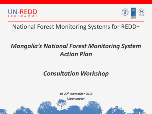 Home Document Library Introduction To Mongolias National Forest Monitoring Systems Action Plan - UN-REDD Introduction to Mongolias National Forest Monitoring Systems Action Plan - UN-REDD Wed, 29 Jan, 2014 Download the resource Format: application/pdf Size: (0.757 MB) download Filed under: Tags MRV Mongolia NFMS GHG Category Empty Related publications View all Foundation documents 23 May, 2025UN-REDD Programme Developer 23/05/2025 - Document Download English 21 May, 2025UN-REDD Programme Draft UN-REDD 2026-2030 Strategy Download English 21 May, 2025UN-REDD Programme Draft Monitoring and Evaluation Framework UN-REDD 2026-30 Download English