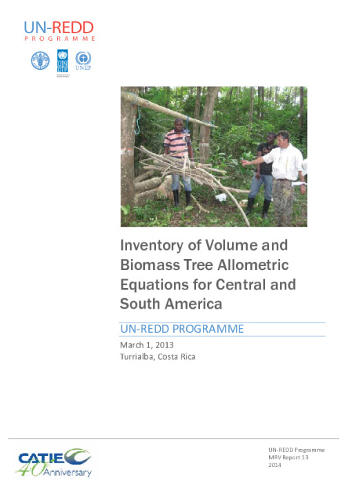 Home Document Library Inventory of Volume and Biomass Tree Allometric Equations For Central and South America Inventory of Volume and Biomass Tree Allometric Equations for Central and South America Tue, 27 May, 2014 Download the resource Format: application/pdf Size: (0.921 MB) download Filed under: Tags MRV FAO Category MRV Working Papers/ Meeting Reports Related publications View all Foundation documents 23 May, 2025UN-REDD Programme Developer 23/05/2025 - Document Download English 21 May, 2025UN-REDD Programme Draft UN-REDD 2026-2030 Strategy Download English 21 May, 2025UN-REDD Programme Draft Monitoring and Evaluation Framework UN-REDD 2026-30 Download English