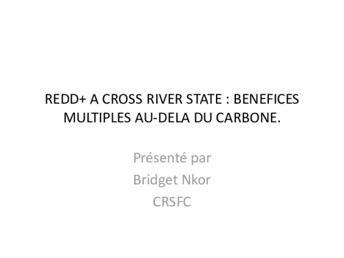 Home Document Library Jour2_REDD+_A_Cross_River_State_benefices_multiples_au_dela_du_carboneFR Jour2_REDD+_A_Cross_River_State_benefices_multiples_au_dela_du_carboneFR Tue, 01 Oct, 2013 Download the resource Format: application/pdf Size: (1.92 MB) download Filed under: Related publications View all Foundation documents 23 May, 2025UN-REDD Programme Developer 23/05/2025 - Document Download English 21 May, 2025UN-REDD Programme Draft UN-REDD 2026-2030 Strategy Download English 21 May, 2025UN-REDD Programme Draft Monitoring and Evaluation Framework UN-REDD 2026-30 Download English