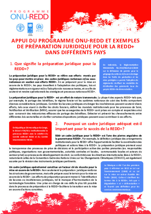 Home Document Library Legal Preparedness (French) Legal Preparedness (French) Wed, 17 Sep, 2014 Download the resource Format: application/pdf Size: (3.308 MB) download Filed under: Category Legal and Regulatory frameworks for REDD+ Related publications View all Foundation documents 23 May, 2025UN-REDD Programme Developer 23/05/2025 - Document Download English 21 May, 2025UN-REDD Programme Draft UN-REDD 2026-2030 Strategy Download English 21 May, 2025UN-REDD Programme Draft Monitoring and Evaluation Framework UN-REDD 2026-30 Download English